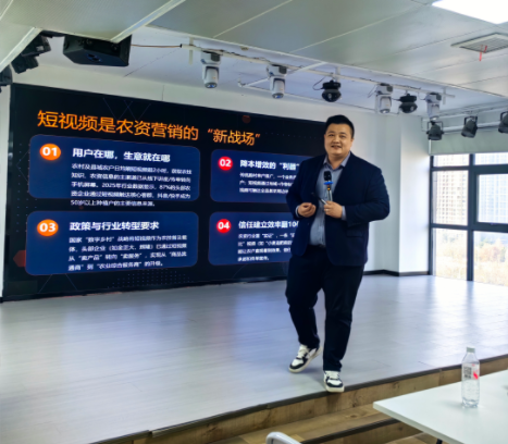 图为:河南农业网红李海鑫老师分享运营抖音账号技术。